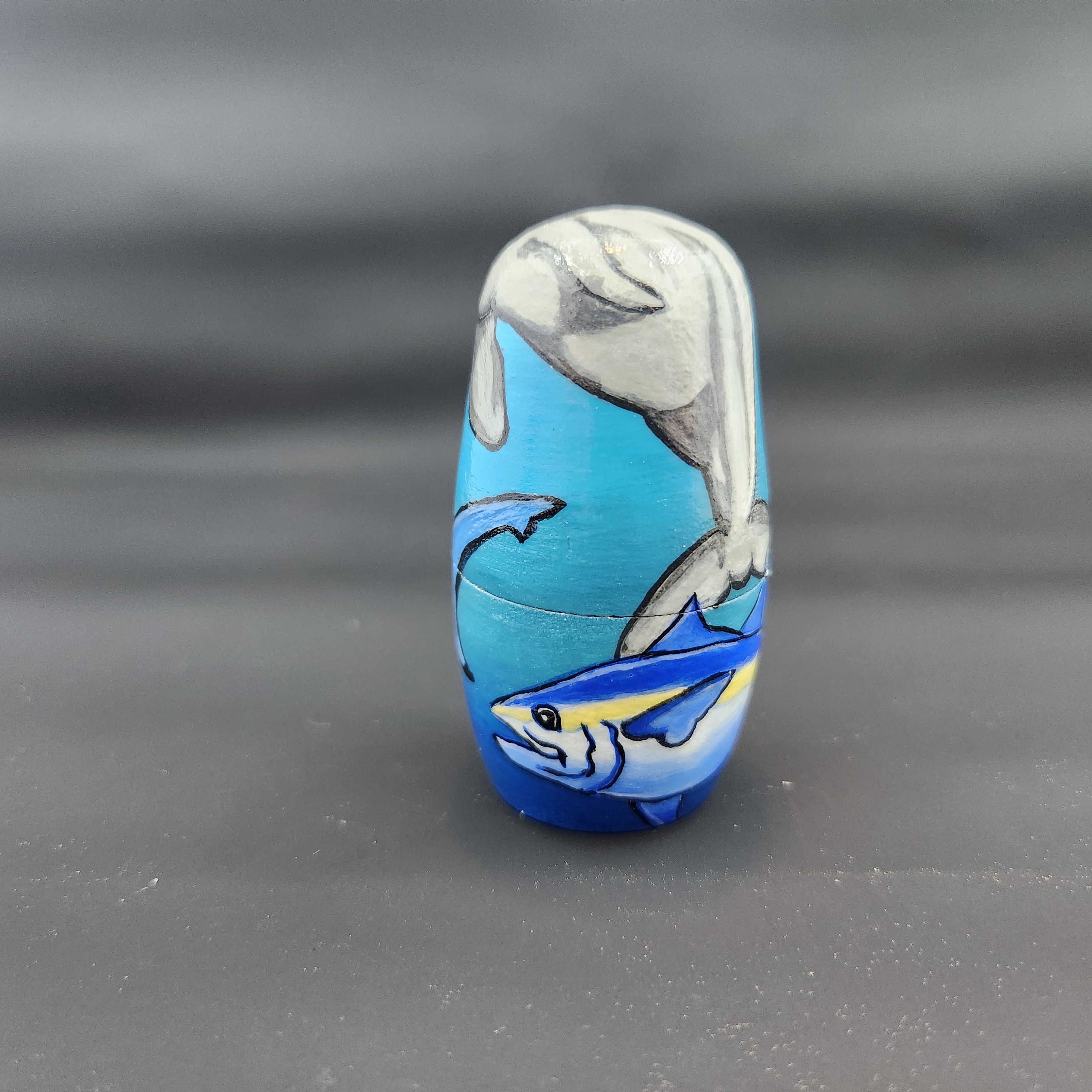 Doll 3: Yellowfin tuna, bottlenose dolphin & hammerhead shark.